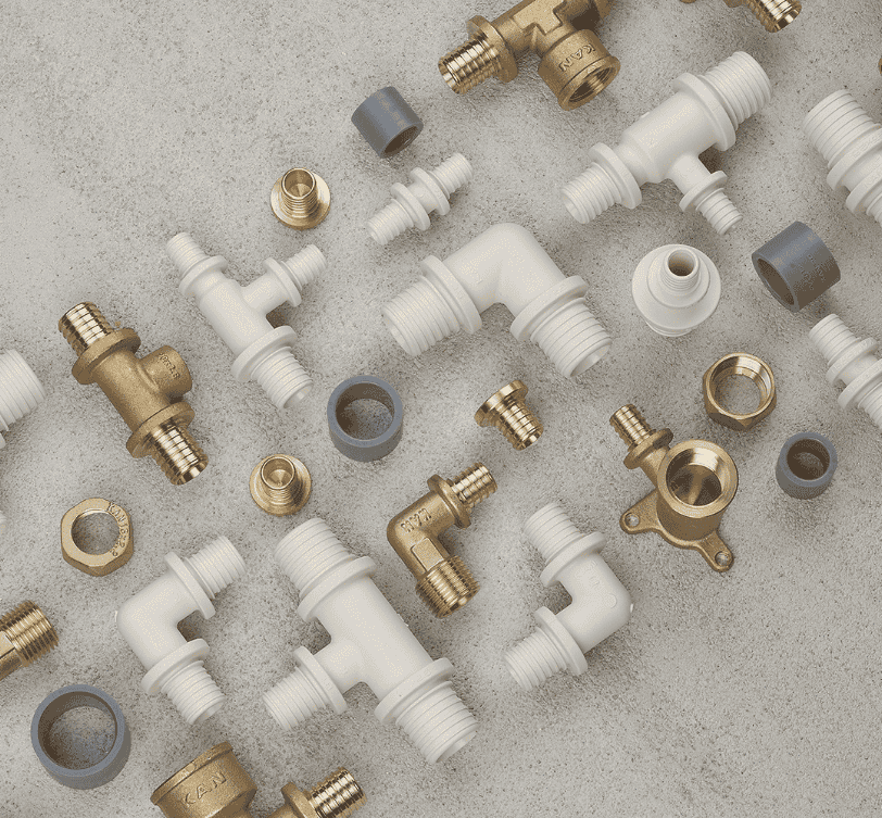 KAN‑therm ultraLINE系统配置的灵活力是由使用不同类型管道构成的, 这些管道是相同的管件设计,黄铜,塑料(PPSU)和塑料管套。