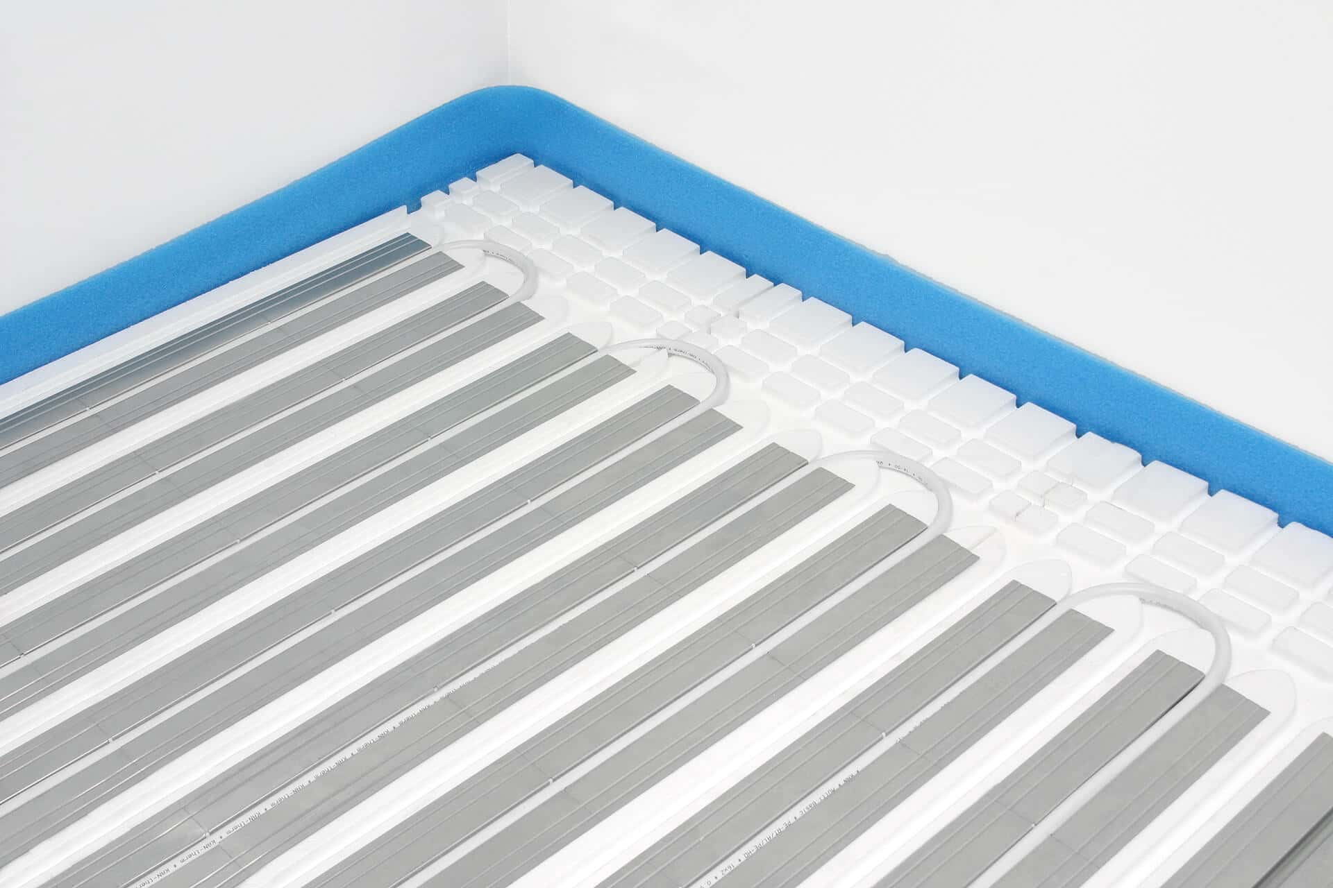 3.将金属型材嵌入将铺设供暖管的TBS发泡聚苯乙烯板中。